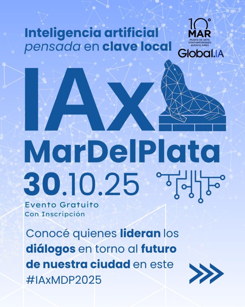 El jueves 30 de octubre, organizado por Global.IA, estaré participando de #IAxMarDelPlata, una experiencia que busca democratizar el conocimiento sobre inteligencias artificiales. El encuentro reunirá a profesionales de distintas áreas para compartir experiencias y miradas situadas sobre la IA en un contexto puramente marplatense.