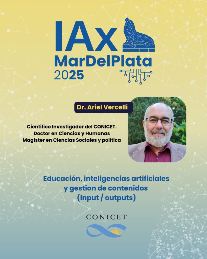 A lo largo de la jornada se desarrollarán cuatro bloques temáticos —IAxSociedad, IAxEducación, IAxSalud e IAxArte&Cultura— que abordarán las distintas dimensiones del impacto de la inteligencia artificial en nuestra vida cotidiana. En particular estaré participando del bloque de educación a las 14 horas aprox (Cápsula 2). La participación es gratuita, con inscripción previa.